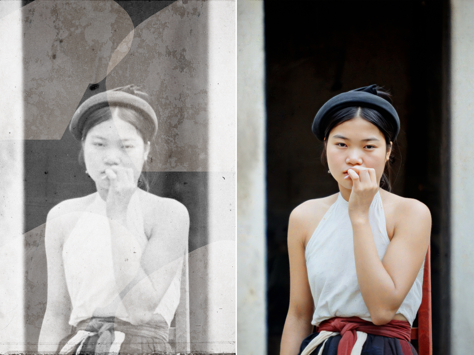 Phục chế chân dung thiếu nữ Hà Nội xưa